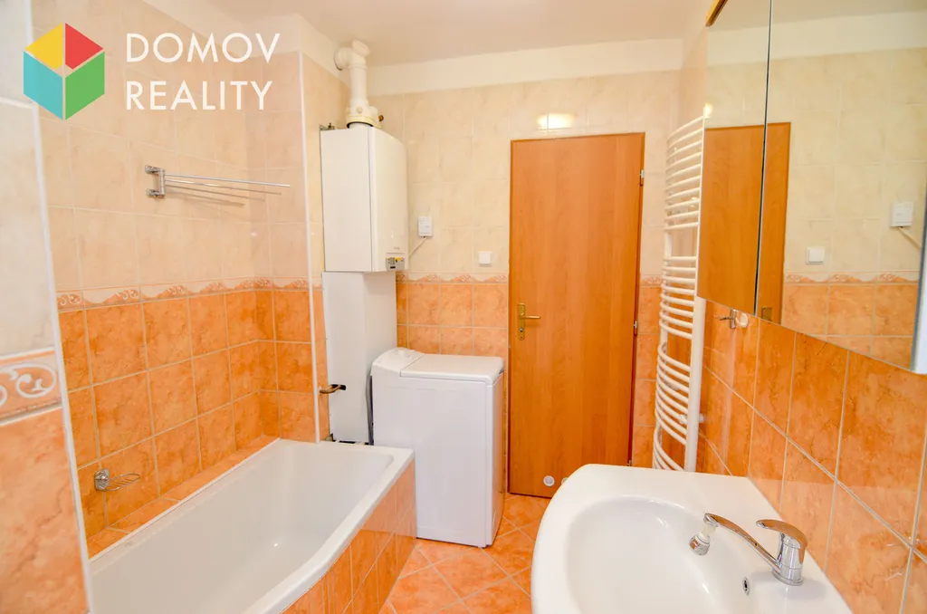 Velká koupelna s oknem je zařízena vanou a koupelnovým nábytkem. V koupelně je umístěn plynový kotel pro vytápění celého bytu a ohřev teplé vody.