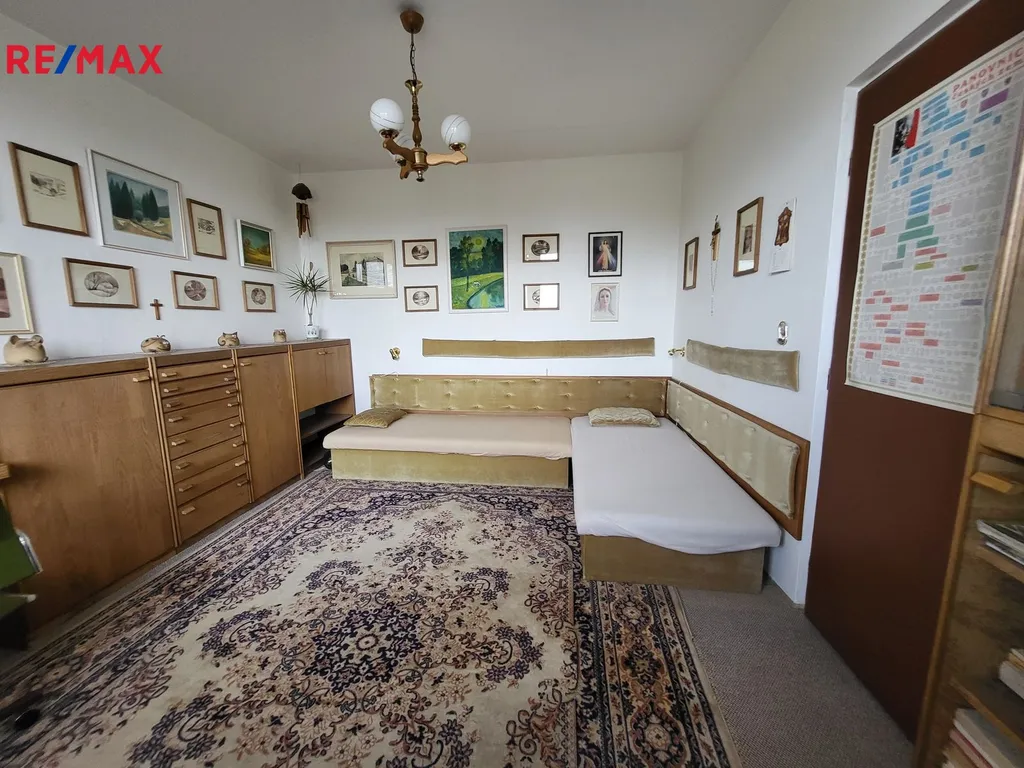 Nabízíme k dlouhodobému pronájmu byt 3+1 o výměře 73,1 m2, který se nachází v 5 patře panelového domu. Panelový dům disponuje výtahem a je zateplený. Byt tvoří lodžie, vstupní předsíň, koupelna, kuchyně, spíž, šatna, 3 pokoje, sklepní prostor 2 m2 a komora 1,9 m2. Vybavení bytu může zůstat k dispozici nájemníkům.