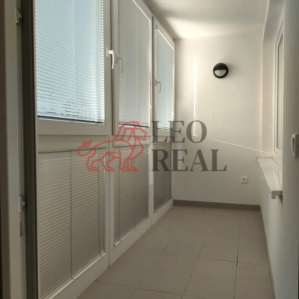 Byt se skládá z předsíně se dvěma vestavěnými skříněmi, obývacího pokoje s kuchyňským koutem a vstupem na lodžii a ložnice bez nábytku. Kuchyňská linka je vybavena sklokeramickou varnou deskou, elektrickou troubou, digestoří, myčkou nádobí a vestavěnou lednicí s mrazákem. V obývacím pokoji je k dispozici jídelní stůl se čtyřmi židlemi. Koupelna je vybavena sprchovým koutem a toaletou.