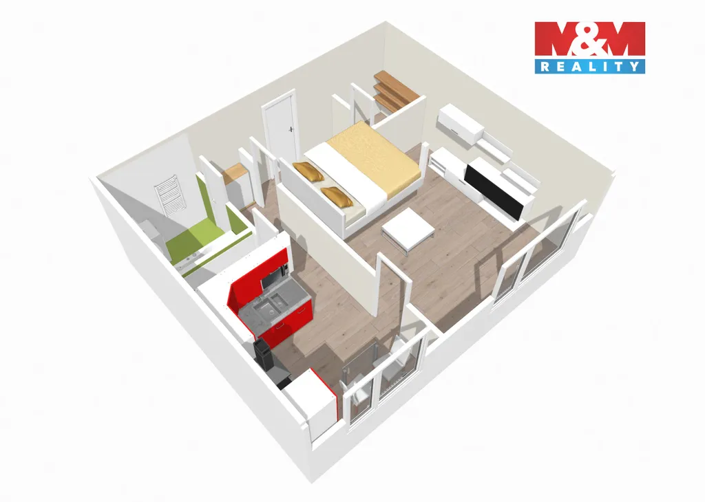Nabízíme k prodeji byt 1+1 o výměře 39 m² v části Liberec VI – Rochlice. Byt je po rekonstrukci, ve velmi dobrém stavu, dispozičně se skládá ze 2 místností - obývací pokoj a samostatná kuchyň, dále vstupní chodba se šatnou. Kuchyňská linka obsahuje vestavné spotřebiče - trouba, sklokeramická deska, myčka, mikrovlnná trouba. Přidanou hodnotou obývacího pokoje je netradiční rohová patrová postel, zavěšená pod stropem - 4 m² s nosností 200 kg/lůžko. V celém bytě jsou sníženy stropy s led bodovým osvětlením. Byt se nachází ve 4.NP osmipodlažního panelového domu, na okraji sídliště. Okna bytu jsou orientovaná na jih s pěkným výhledem na Ještědský hřeben. V současnosti je byt pronajímán nájemníkovi s bezproblémovou platební morálkou - ideální jako investice. Veškerá občanská vybavenost je v místě - MŠ, ZŠ, pobočka České pošty, nákupní centra, zastávka MHD 1 min. od domu - centrum busem 9 min., 2 min. autem od rychlostní komunikace 1/14 s napojením do Jablonce nad Nisou nebo na 1/35 do Prahy.