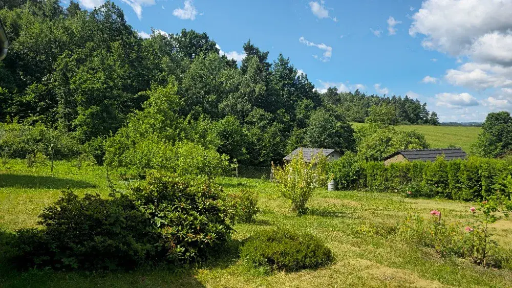 Pozemek je částečně rovinatý, udržovaný, s ovocnými stromy a oplocený.