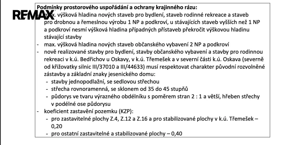 Celková výměra pozemků náležejících k rodinnému domu se skládá z části zahrady včetně rodinného domu o výměře cca 1 398m2, pozemku pod stodolou se studnou (cca 64m2) a pozemek park. č. 1146 - neplodná půda o výměře 97m2 severně od Třemešku.