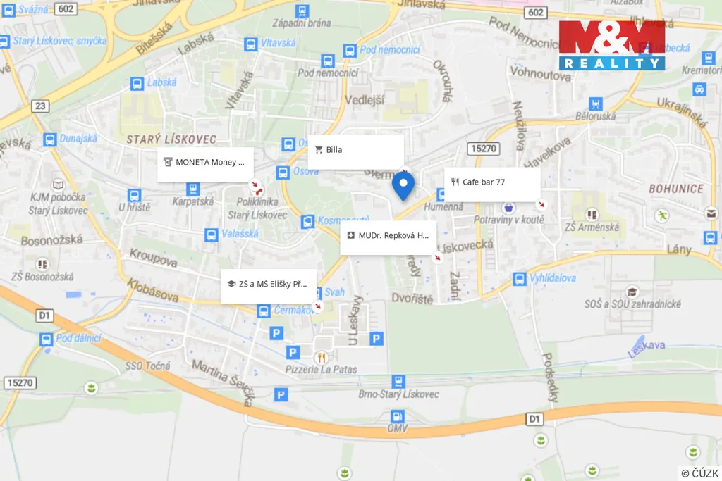 Velkou výhodou je lokalita s kompletní občanskou vybaveností v blízkosti se nachází obchody, služby, zastávky MHD, Fakultní nemocnice Brno i univerzitní kampus. Centrum města je dobře dostupné.