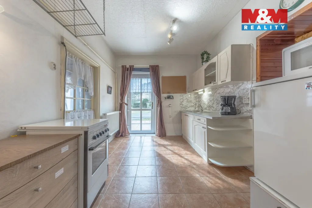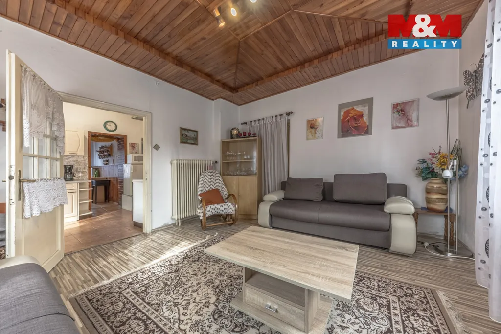 Dispozice cca 3+1 (4+1). V přízemí předsíň, samostatné WC, koupelna, kuchyně s vedlejším obývacím pokojem a navazující jídelní kout na straně druhé. V patře dva samostatné pokoje.