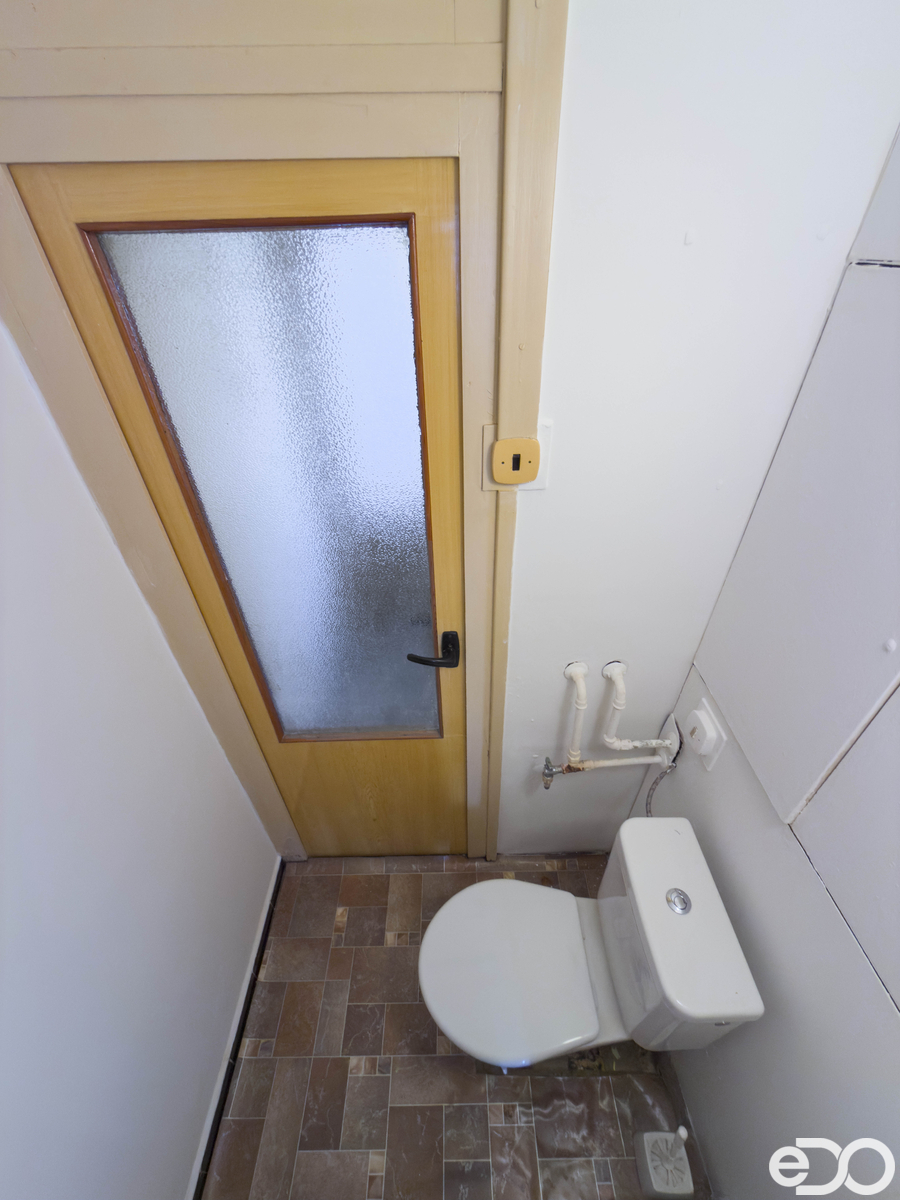 Dispozice dále zahrnuje předsíň (5,87 m²) s praktickou komorou (1,79 m²) přímo v bytě, koupelnu (3,18 m²) a samostatné WC (0,95 m²). Na fotkách jsou pod koberci patrné zachovalé dřevěné parkety, které by po renovaci dodaly novému domovu nezaměnitelnou atmosféru. Významným benefitem je také energetická náročnost budovy, která spadá do úsporné klasifikační třídy C.