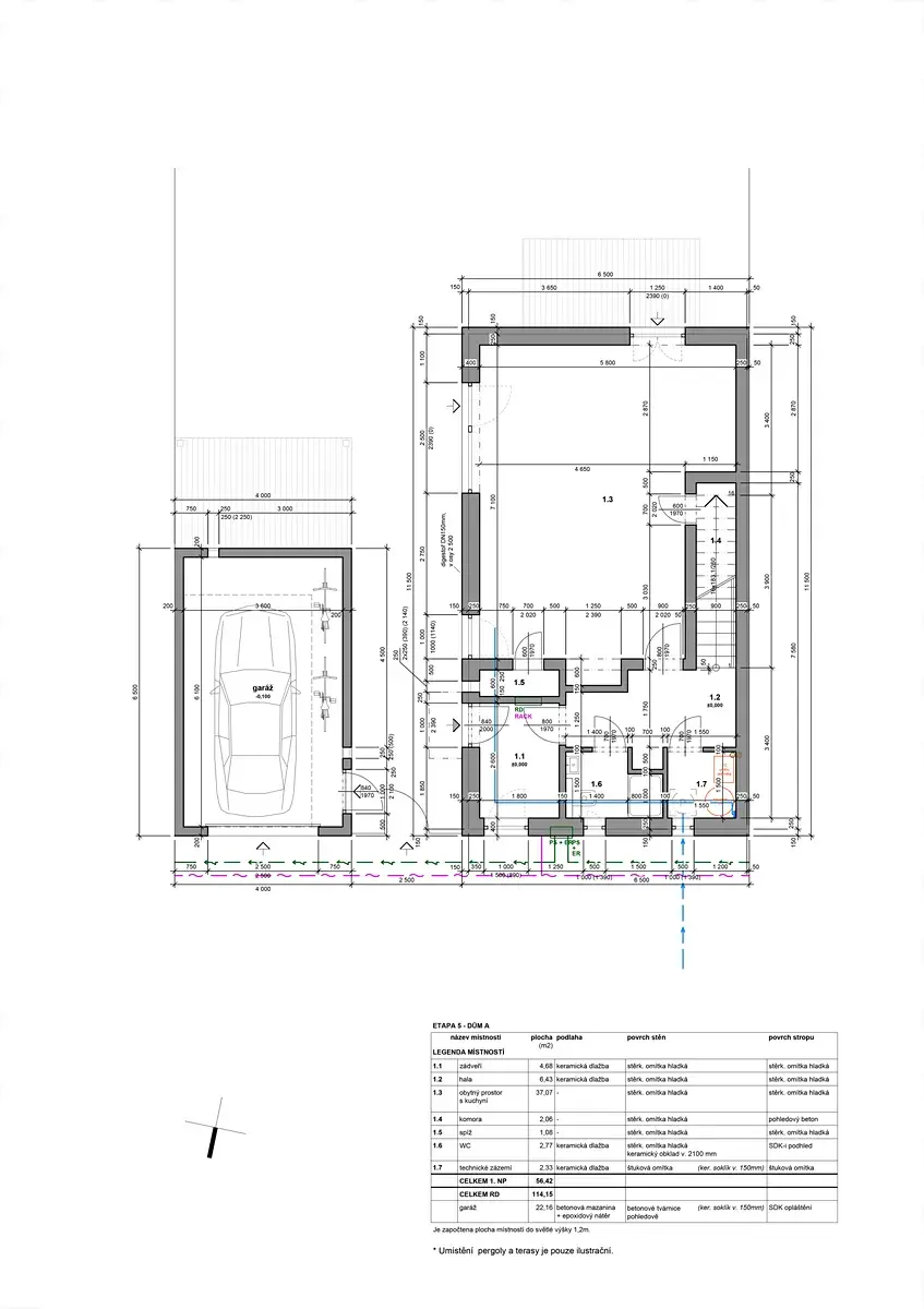 Obrovskou výhodou je samostatná a velkorysá garáž, kde se vejde i malá dílnička (zásuvka 380 V). Velmi úsporný provoz je zajištěn díky výborným tepelně izolačním vlastnostem domu.