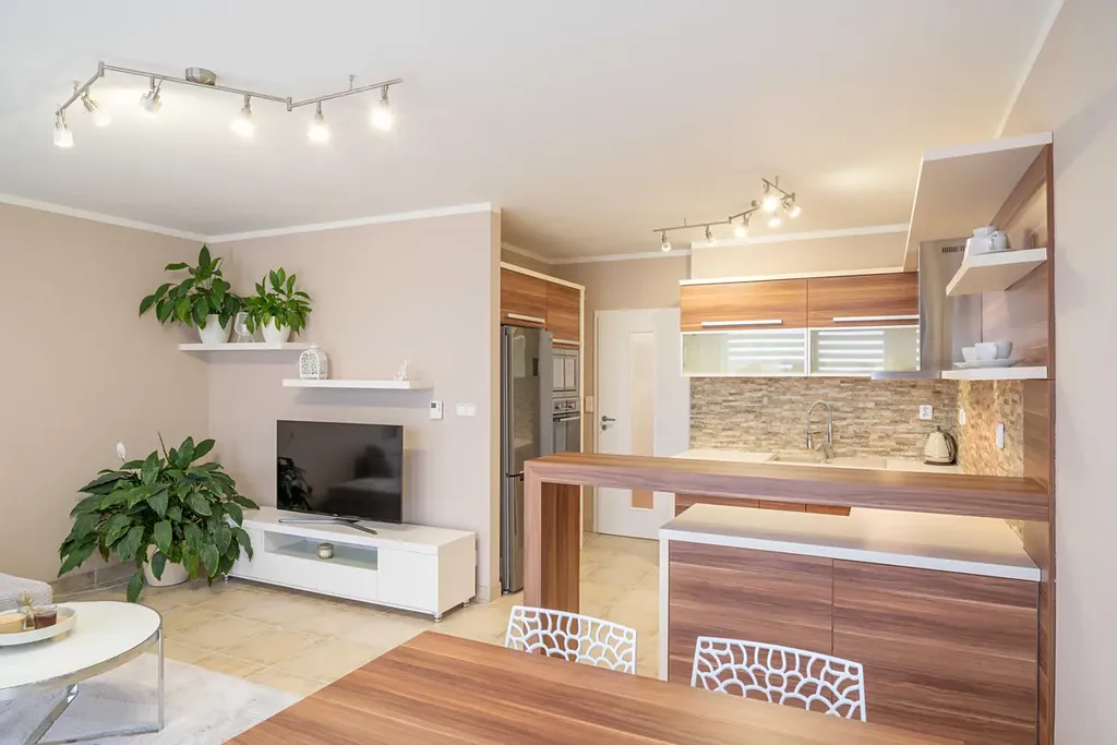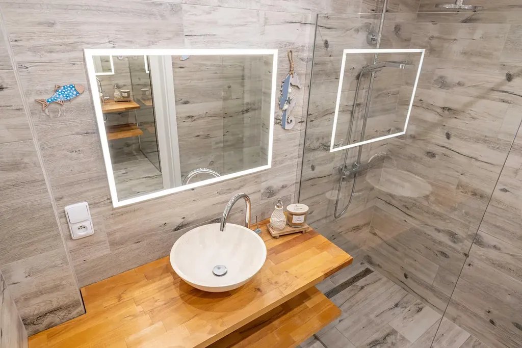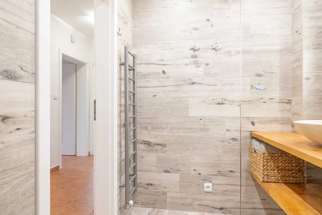 - Nadstandardní rekonstrukce: Byt prošel kompletní a designově sjednocenou proměnou – od moderní kuchyně až po koupelnu s walk-in sprchovým koutem a podsvíceným zrcadlem, která působí jako soukromé wellness.