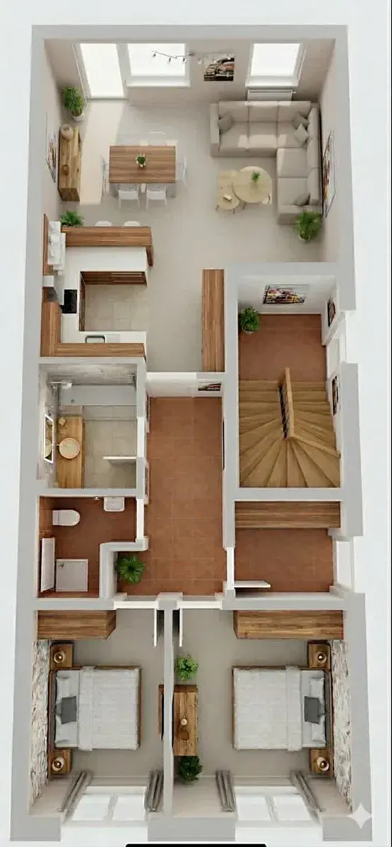 - Obrovská variabilita: Velký pokoj nabízí skvělý potenciál – jednoduchou dostavbou příčky z něj snadno vytvoříte další plnohodnotnou místnost (dětský pokoj nebo pracovnu).