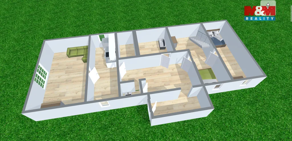 Celková plocha pozemku činí 414 m², užitná plocha domu je 74 m². Nemovitost je ve dobrém technickém stavu a poskytuje široké možnosti využití – ať už jako trvalé bydlení, víkendový dům či investici.