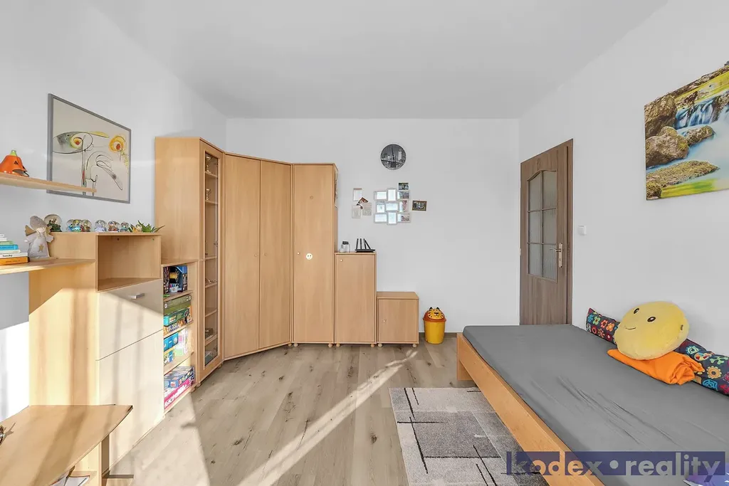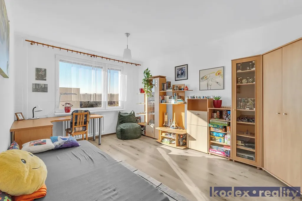 Dispozice: předsíň s komorou, koupelna s vanou a prostorem pro pračku a sušičku, oddělené WC, kuchyň s jídelním prostorem, obývací pokoj se vstupem na lodžii, ložnice, 2x dětský pokoj, pracovna a sklepní kóje v suterénu budovy.