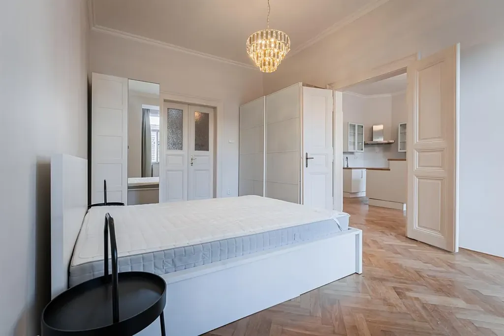 Částečně zrekonstruovaný zařízený byt 2+kk (1 ložnice, 1 koupelna), o celkové obytné ploše 61,7 m2, je situovaný v 1. patře rezidenční budovy s výtahem, přímo v historickém srdci Prahy, ve vyhledávané lokalitě Staré Město na Praze 1, v ulici Kozí.