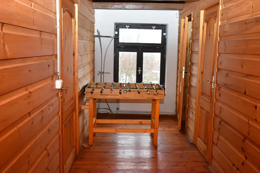 V patře se nachází stylová místnost s barem a kuchynkou. Zde se dají točit různé nápoje a připravovat různé dobroty. Je zde i místnost pro různé hry a WC dámské a pánské. Součástí je i galerie s pěkným výhledem na oslavence.