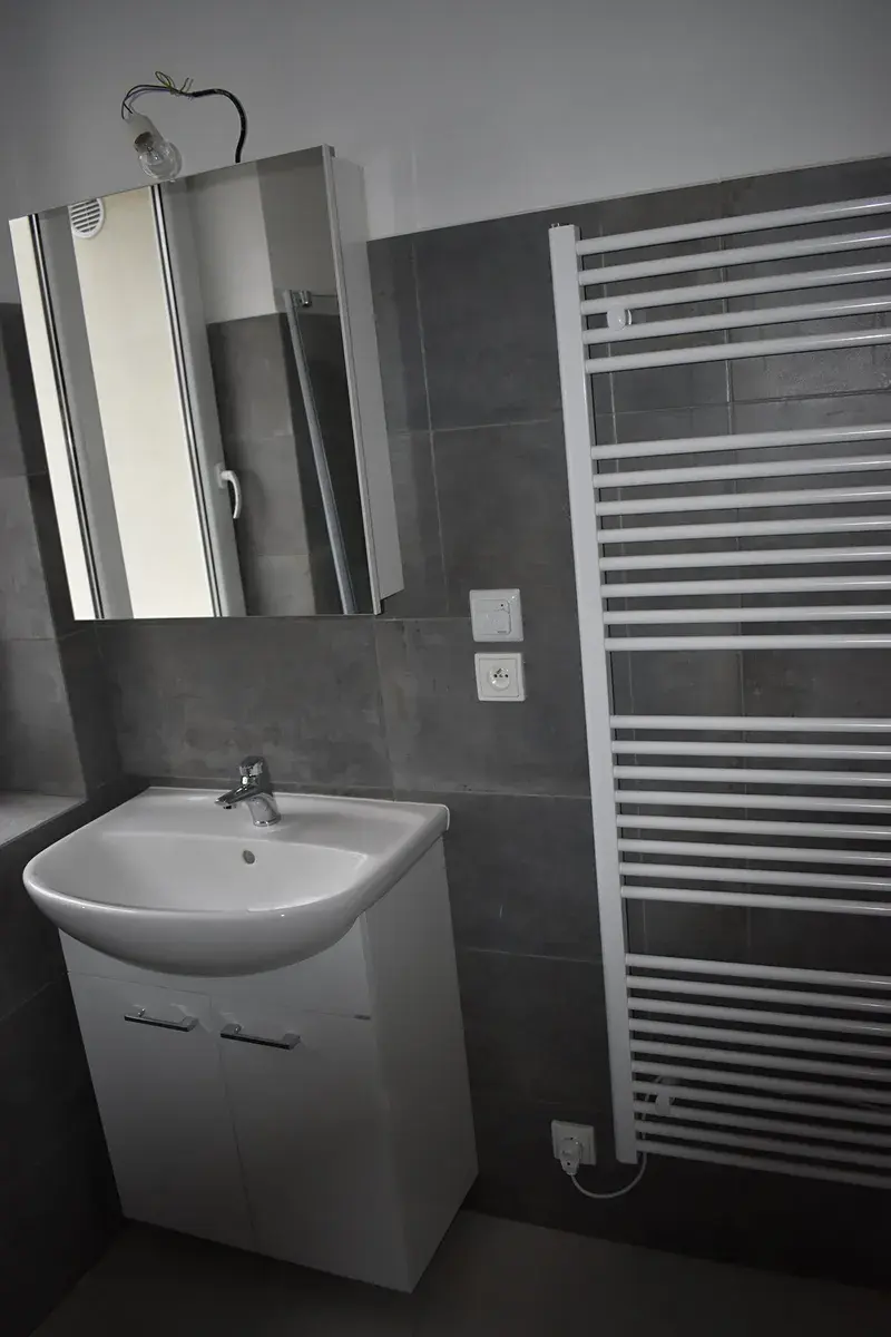 Byty procházejí poctivou a nákladnou rekonstrukci, plastová okna, žaluzie, rozvody - voda, kanalizace, elektro, omítky, podlahových izolací - tepelná, hydroizolace, plovoucích podlah, nové topení - elektrické podlahové - regulace každé místnosti, , obklady - velkoformátové, nová sanita / sprchový kout 90cm /, závěsné WC - geberit, otopný žebřík .V bytě podlahové topení.