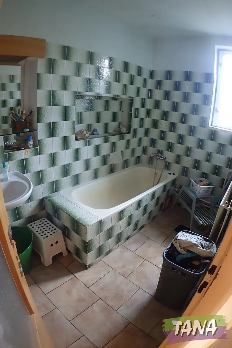 Nabízíme k prodeji starší rodinný dům (zast. plocha 171m2) určený k celkové rekonstrukci. Dům se nachází na jižním okraji malé a malebné obce Semčice v atraktivním dosahu cca 10 minut autem od Mladé Boleslavi. Dům je dvoupatrový, kde v přízemí jsou povětšinou technické místnosti, velká dílna, kotelna, garáž, černá kuchyně a jeden pokoj. V prvním nadzemním podlaží se nachází byt 5+1 s velkým balkonem. Dům je svou dispozicí ideální volbou pro majitele který hledá bydlení pro sebe a svou rodinu (celé 1.patro) a současně potřebuje zázemí (celé přízemí) pro své podnikání, živnost či prostorově náročnější koníček. Vzhledem k poněkud zanedbané údržbě je nemovitost jako celek určena k celkové rekonstrukci (dům je nezateplen, stará okna, rozvody, elektroinstalace atd...). Voda - vlastní pitná studna, VVŘ v komunikaci, topení - ústřední na tuhá paliva, TUV - bojler, kanalizace - obecní, plyn - ANO v komunikaci ale nezaveden do domu. Na střeše jsou instalovány fotovoltaické panely. V obci se nachází základní občanská vybavenost (základní škola, obchod, knihovna, pošta, koupaliště). Kompletní občanská vybavenost cca 3 km Dobrovice a nebo dále 10 km Mladá Boleslav. Za domem velká dřevěná přístavba a pěkná menší zahrádka umožňující klidný a nerušený odpočinek. Před domem velký skleník. Pozemek celkem 780m2