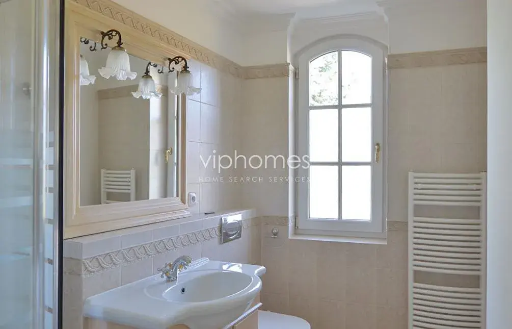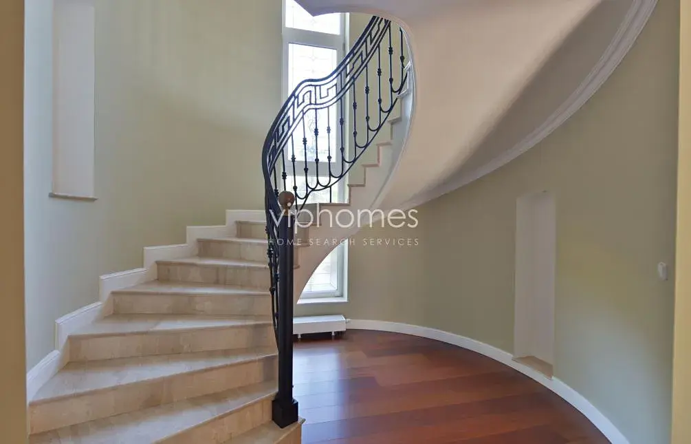 Hlavní obytný prostor v přízemí zahrnuje komfortní obývací pokoj s krbem, plně vybavenou kuchyň s jídelnou a spíží, dva pokoje s flexibilním využitím, koupelnu, samostatnou toaletu, technickou místnost. Na obývací pokoj navazuje venkovní terasa, klidný zahradní prostor s krytým vyhřívaným bazénem. V horním patře je umístěna centrální hala, 4 ložnice, 3 koupelny, 2 šatny, terasa, a technická místnost. Kuchyně je kompletně vybavena ( 2 lednice, teplovzdušná trouba, mikrovlnná trouba, myčka nádobí).