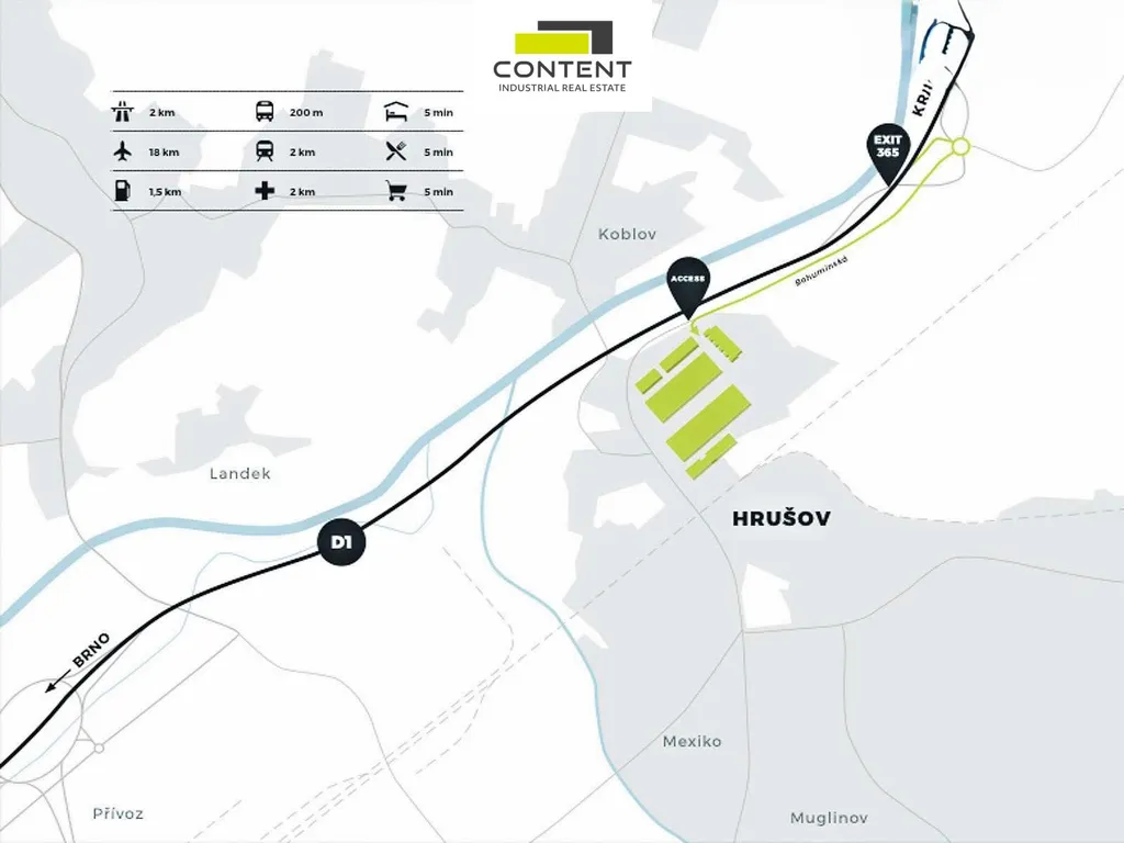 - perfektní lokalita přímo u exitu 365 z D1,
