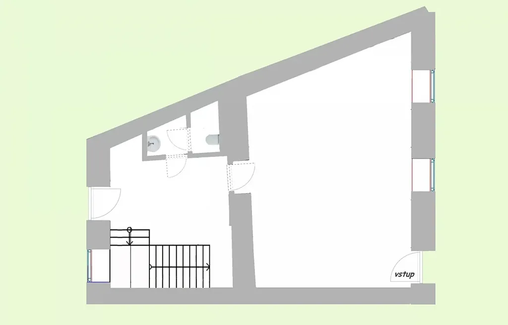 Vhodné například pro vinotéku, showroom, kancelář, e-shop nebo podobná využití, která nebudou rušit svým provozem.