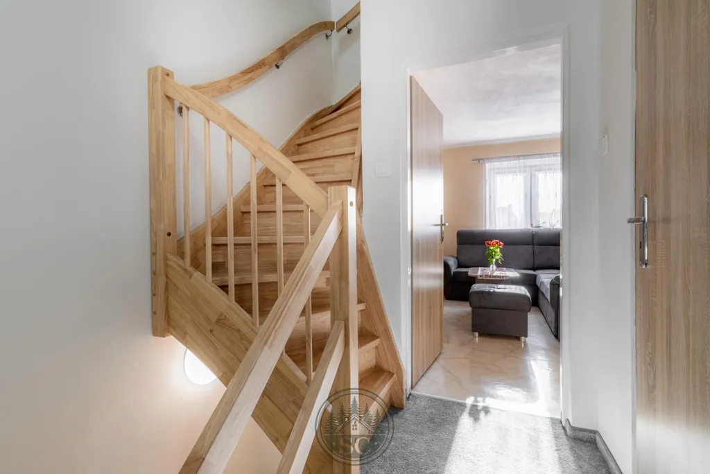 Do nově vybudovaného podkroví vedou krásné dřevěné schody z dílny regionálního truhláře a nacházejí se zde dva samostatné pokoje.