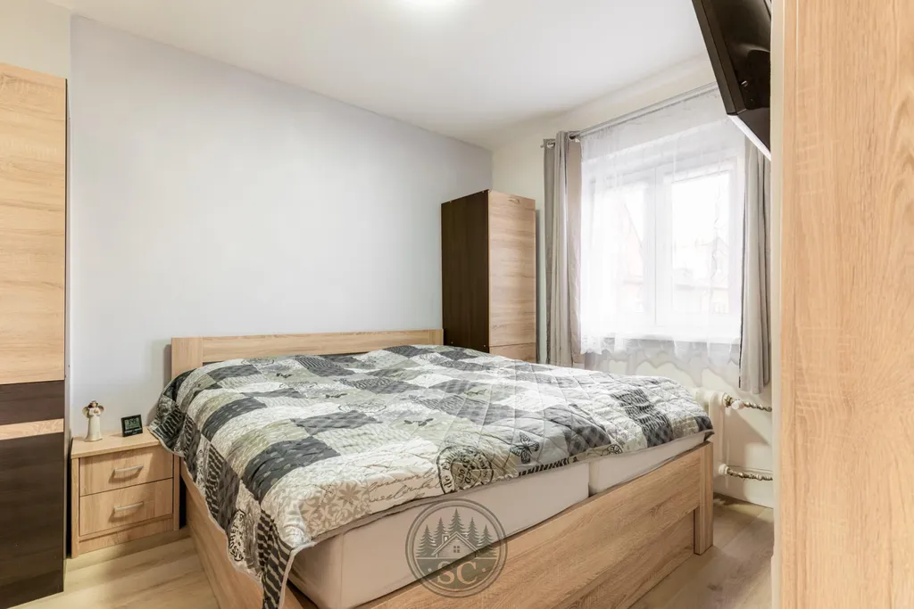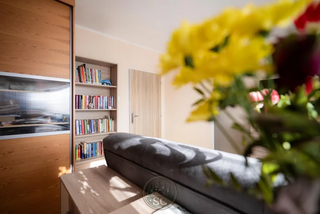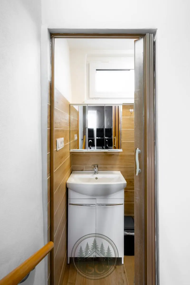 Ve 2. nadzemním podlaží je ložnice a další obytný pokoj, přičemž samostatné WC s umyvadlem a skříňkou je umístěno v mezipatře.