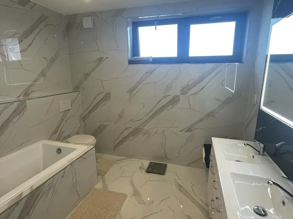 Nabízíme k prodeji luxusní rodinný dům v Jenči u Prahy. Dvoupodlažní moderní dům o užitné ploše 192 m2 a dispozičním řešení 4+1 se nachází v klidném zákoutí uprostřed obce Jeneč. V přízemí domu je prostorný a světlý obývací pokoj propojený s velkorysou kuchyní a jídelnou, dále prostorná vstupní hala se schodištěm a koupelna. V patře domu v klidové zóně jsou 3 útulné ložnice (20, 24 a 27 m2), šatna, koupelna a technická místnost s dalším wc. Dům je novostavba s energetickou náročností kategorie C. Vystavěn je z Porothermu, střešní krytina pálená taška Tondach. Vytápění plynovým kombinovaným kondenzačním kotlem, v přízemí podlahové topení, v patře otopná tělesa. Jako podlahová krytina byla použita luxusní velkoformátová dlažba, v ložnicích je kvalitní vinyl. Technické řešení domu umožňuje i dvougenerační bydlení, tj. rozdělení na 2 samostatné bytové jednotky. V současné době není dům ještě zkolaudován, a to z důvodu absence fasády. Je ale již užíván k bydlení na základě Rozhodnutí o předčasném užívání. Zhotovení zateplené fasády je zahrnuto v ceně domu, nový majitel si může vybrat barvu i provedení. Obec Jeneč je plně vybavená moderní obec v těsné blízkosti Prahy (pár minut autem i PIDem).