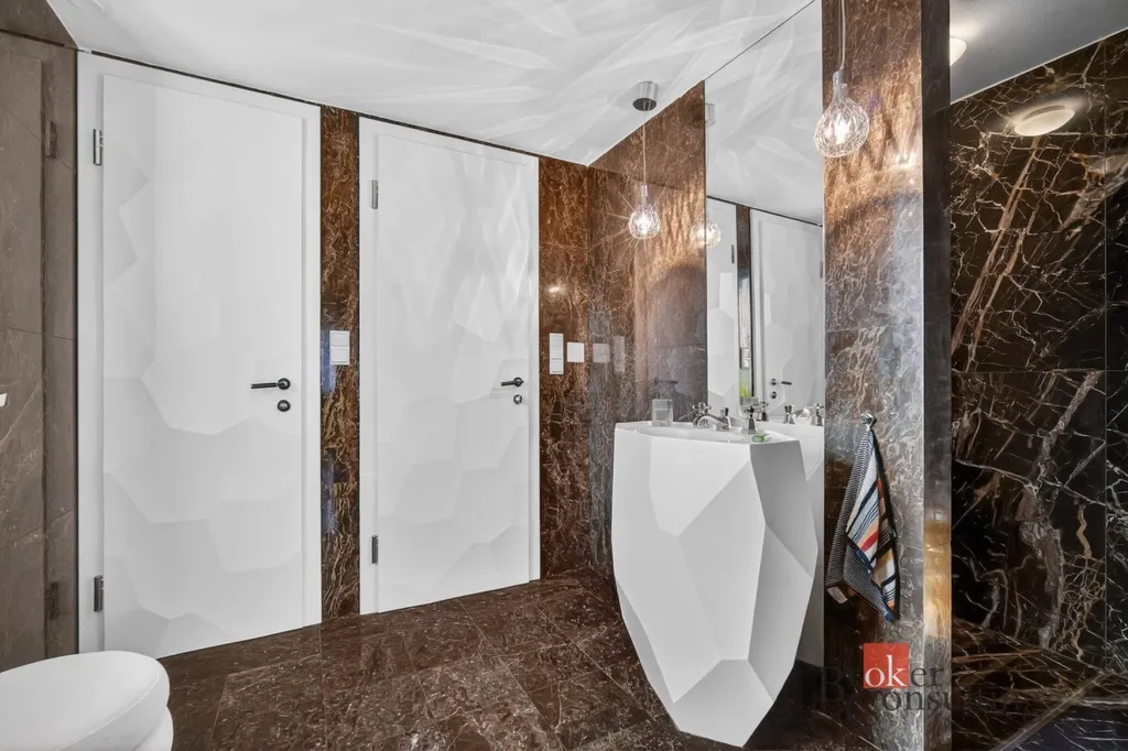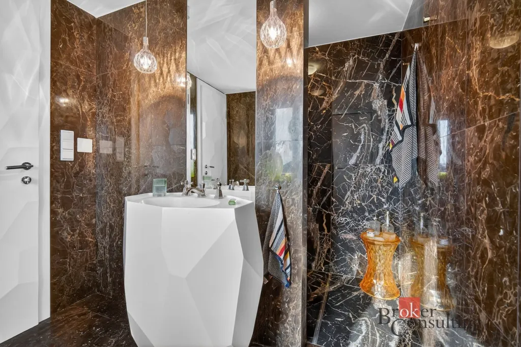 Celý byt je proveden ve vysokém standardu – podlahy z exotického dřeva, kvalitní designové materiály a precizní řemeslné zpracování vytvářejí nadčasový a elegantní prostor.