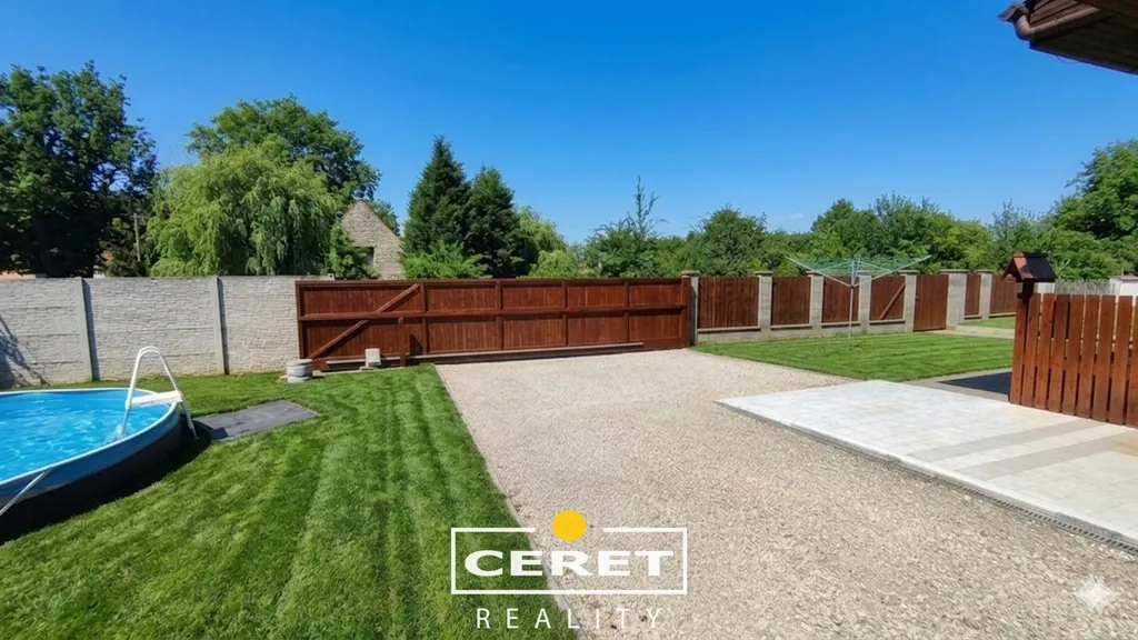 Pozemek o rozloze 759 m and sup2; je stvořen pro odpočinek. Letní večery můžete trávit v zastřešeném posezení pod pergolou s kompletním zázemím, zatímco děti se vyřádí v bazénu. Nechybí ani vyhrazené parkovací místo přímo na pozemku.