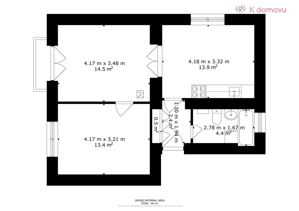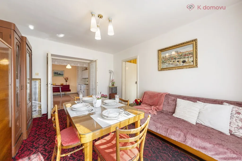 Nemovitost byla až doposud celoročně a plnohodnotně využívána, udržována v čistotě a pořádku. Dispozice bytu 2+1 o velikosti cca 49,35m2 disponuje vstupní chodbou, kuchyní s jídelnou, ložnicí a obývacím pokojem s francouzským oknem, které umožňuje větší prostor pro světlo z jihozápadní strany. Na chodbě je pak vestavěná skříň a koupelna s WC. Dva sklepy mají celkem 3,80m2. Pro svou dispozici je byt vhodný i jako investiční příležitost k pronájmu. V domě jsou veškeré IS a vytápění je řešeno plynovými tělesy Mora a v koupelně je bojler napojen na plynovou karmu.