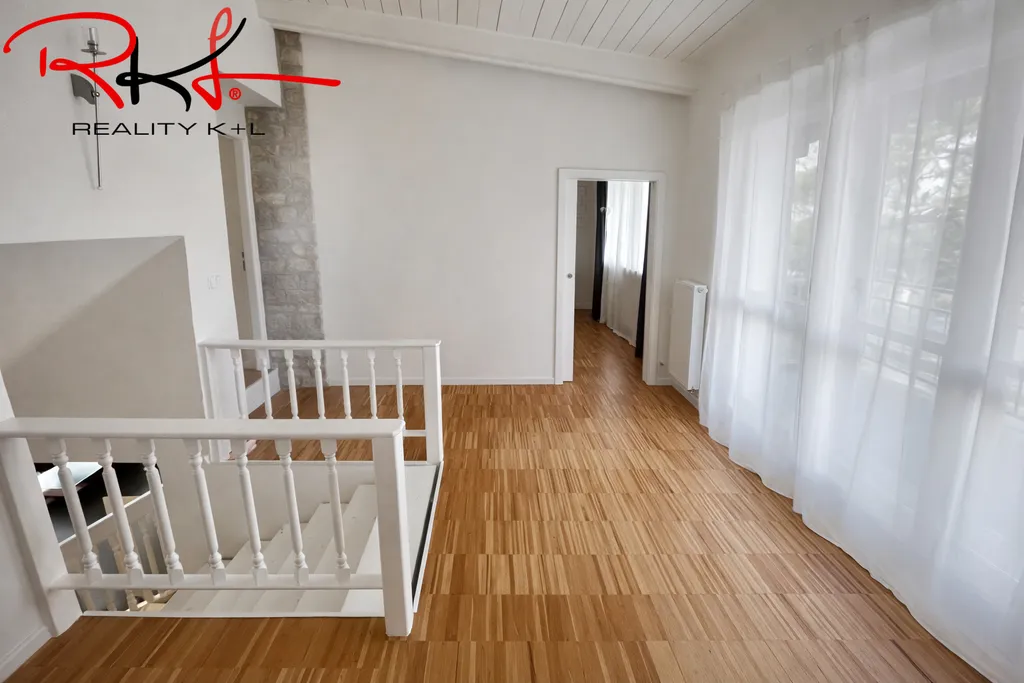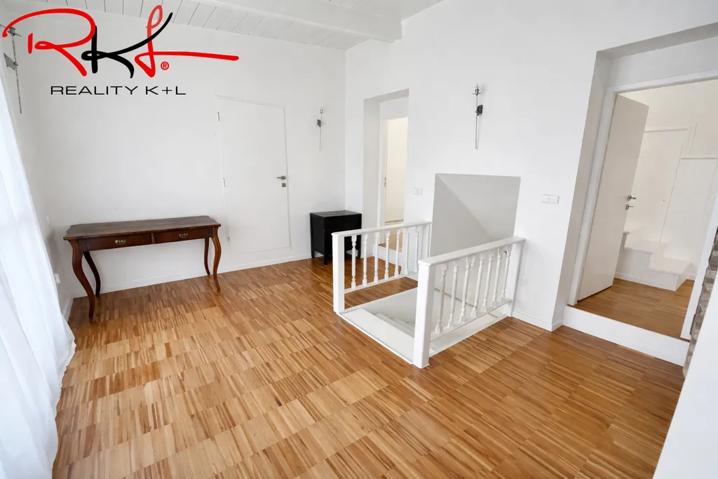 Patro: po schodech se dostanete do patra, kde je prostorná ložnice a dva pokoje, balkón. Dále se na patře nachází koupelny pro každý pokoj. Vytápění je řešený plynovým kotlem a a ohřev vody el. boilerem.
