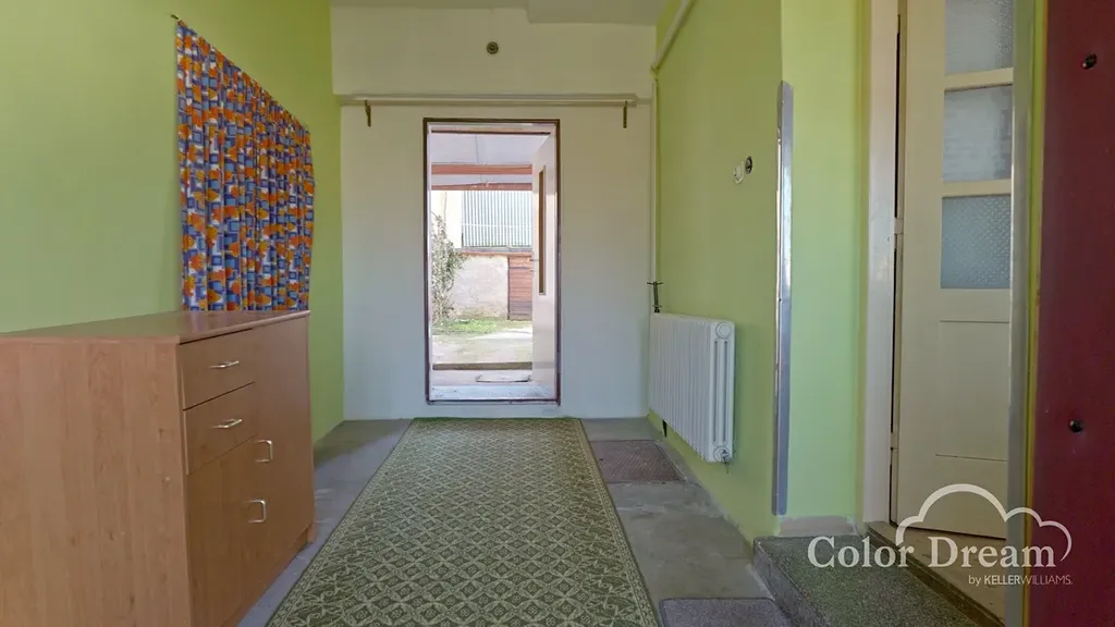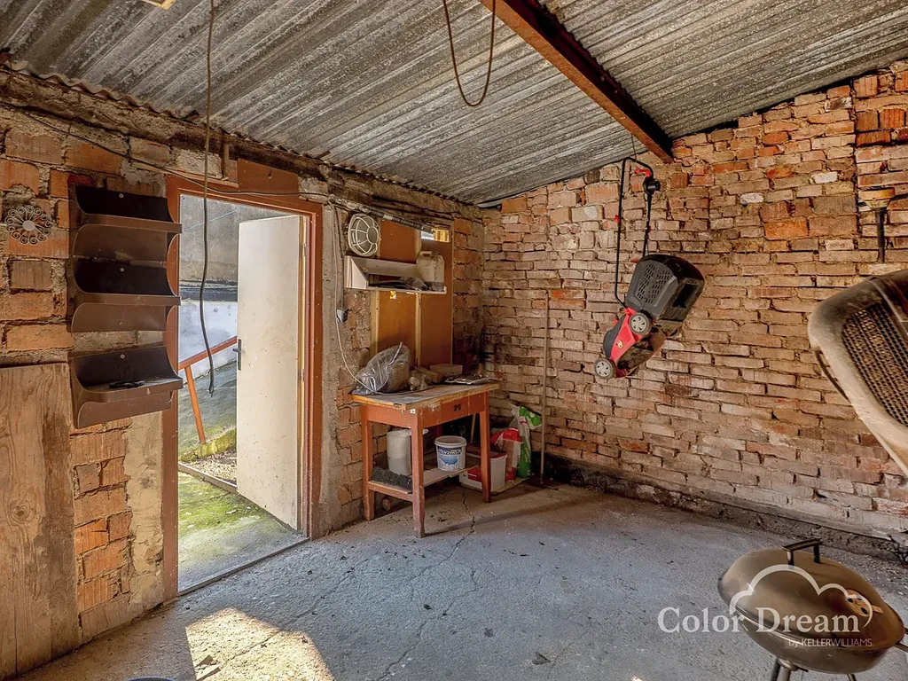K domu náleží prostorná půda vhodná k vestavbě obytného podkroví nebo jako velký úložný prostor. Součástí je sklep, vlastní studna a upravená, prosvětlená zahrada s možností terasy či menšího ovocného sadu. Praktickým benefitem je příjezd na pozemek ze zadní strany, což usnadňuje parkování nebo přístup pro zahradní techniku. Okna jsou plastová, což zlepšuje tepelně-izolační vlastnosti a snižuje nároky na údržbu.
