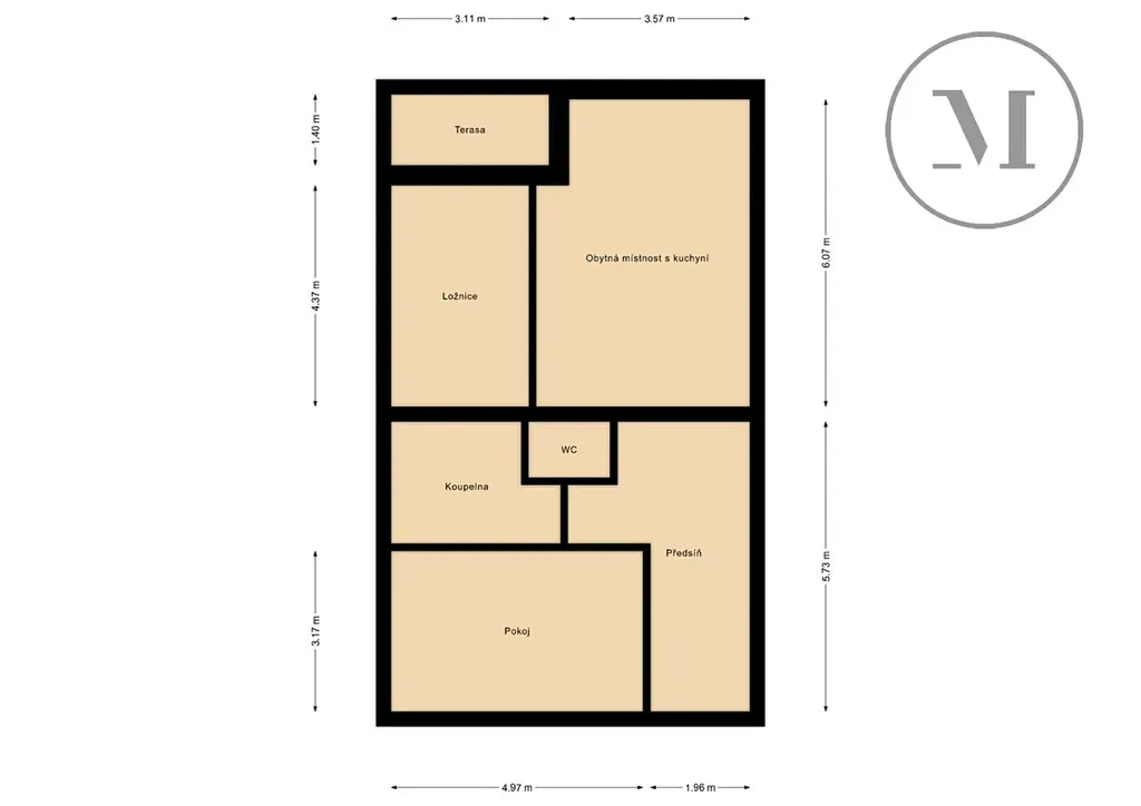 Prostorná terasa (5m²)