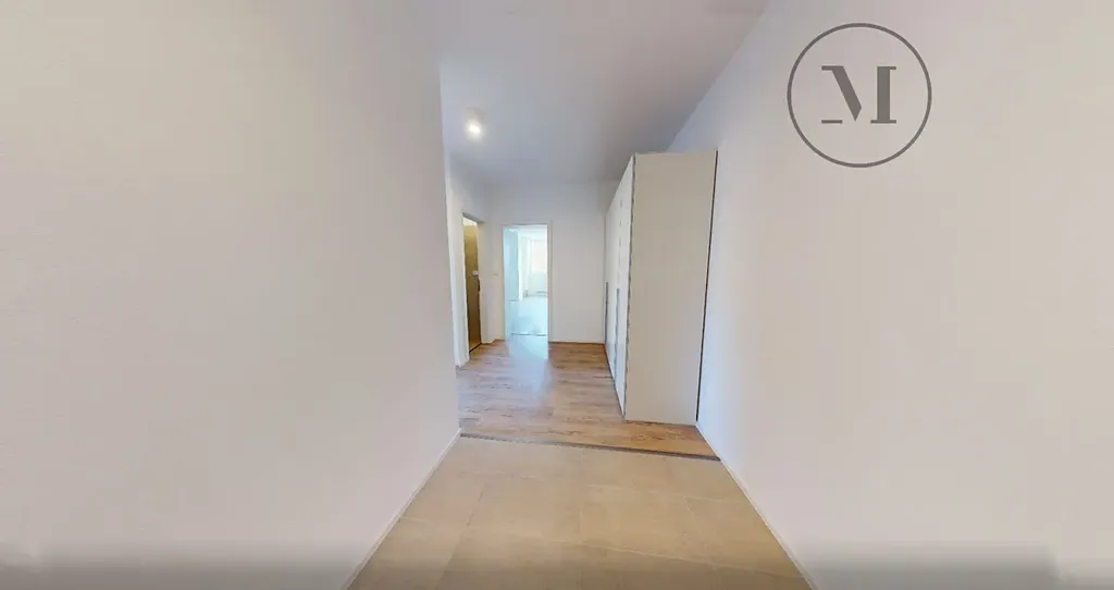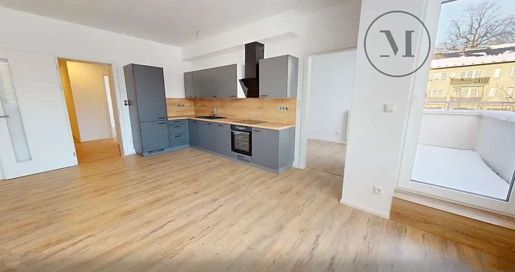 V bytě je plně vybavená kuchyňská linka s vestavěnými spotřebiči (lednice s mrazákem, varná deska, trouba, digestoř a myčka). Díky velkým oknům je byt po celý den krásně slunný a prosvětlený, což vytváří příjemnou a útulnou atmosféru.