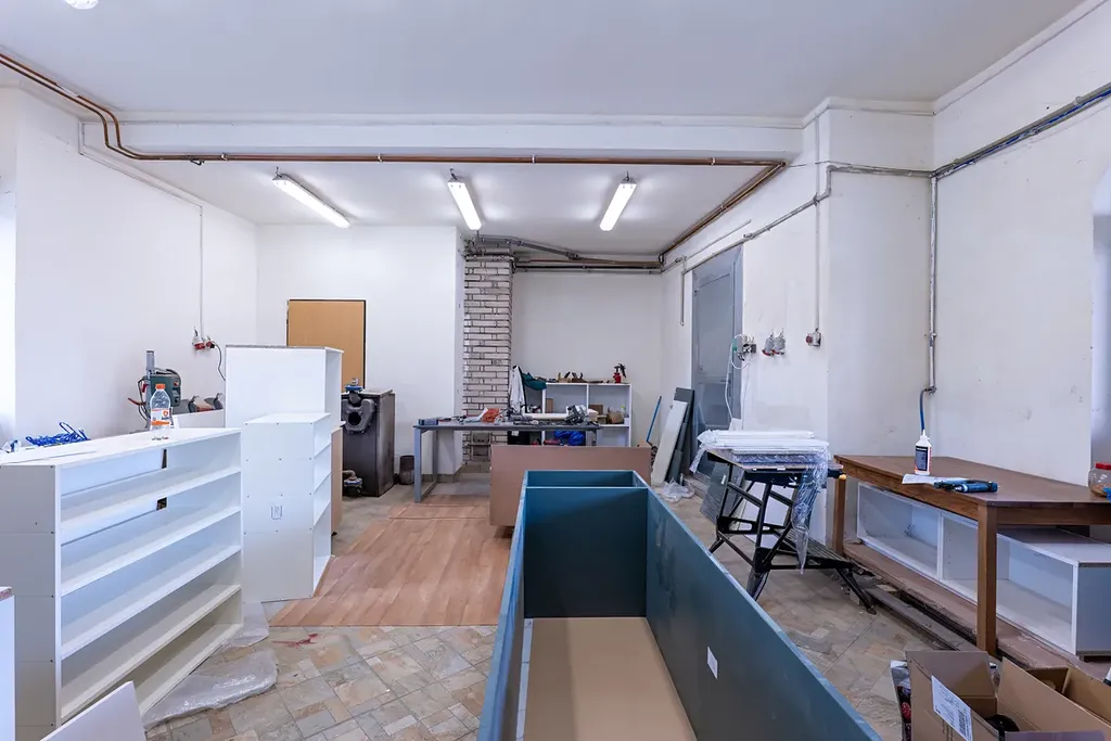 Dům je rozdělen na dvě podlaží : přízemí a první patro. V přízemí nalezneme nebytové prostory využívané především pro potřeby truhlářské dílny (123,2m2) a technickou místnost (2m2) s plynovými kotly vytápějící celý dům. Nabízí se přeměnit tyto nebytové prostory garáž, hernu, posilovnu či sklady. V přízemí se taktéž nachází byt. jednotka dispozice 1+1 (38,7m2) zařízená s kk, koupelnou se sprchovým koutem + WC.