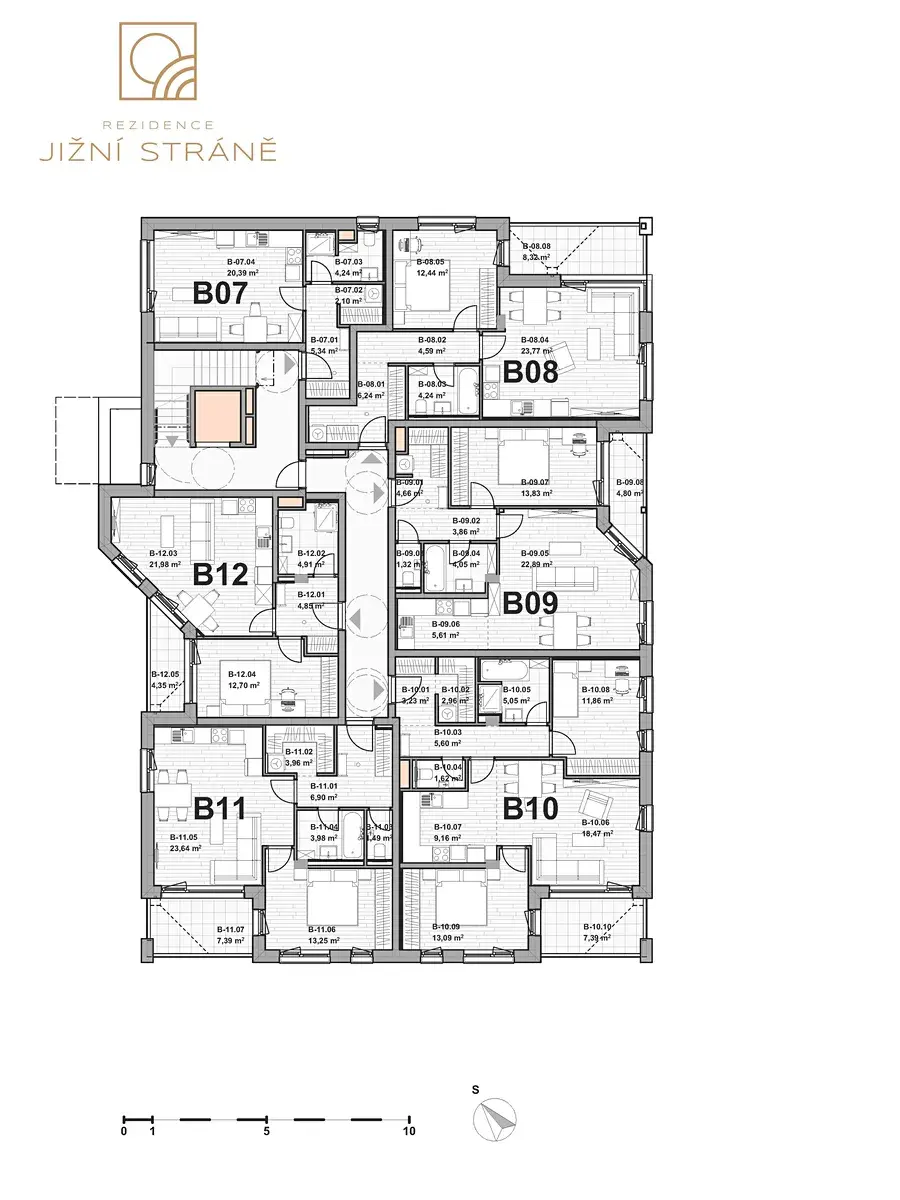 Ve třetí etapě vznikne bytový dům BD4 o dvou blocích A a B propojených suterénním parkovištěm s celkem 39 byty. V rámci této etapy nabízíme k prodeji bytovou jednotku s balkonem v 2.NP bloku B s užitnou plochou 56 m².