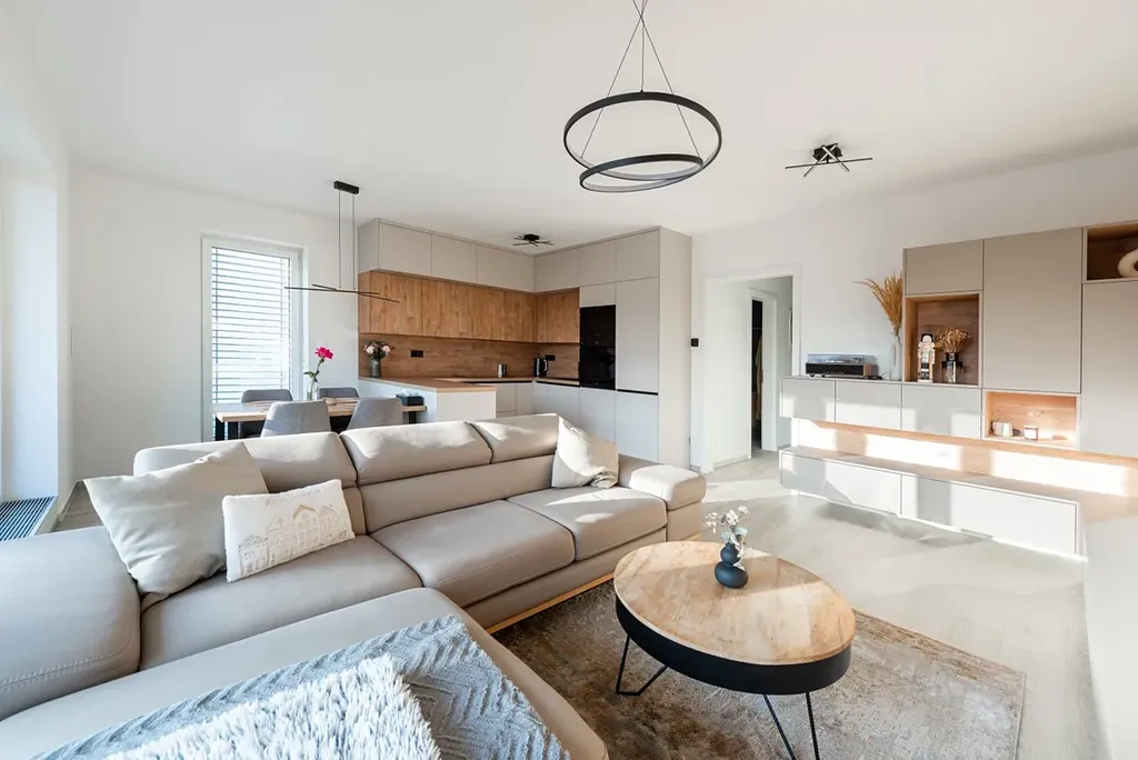 Nabízená bytová jednotka se nachází ve 2.NP třípodlažního rezidenčního viladomu z roku 2023. Byt ve vysokém standardu, designový interiér, vše na míru. Pojďme se na to podívat podrobněji.