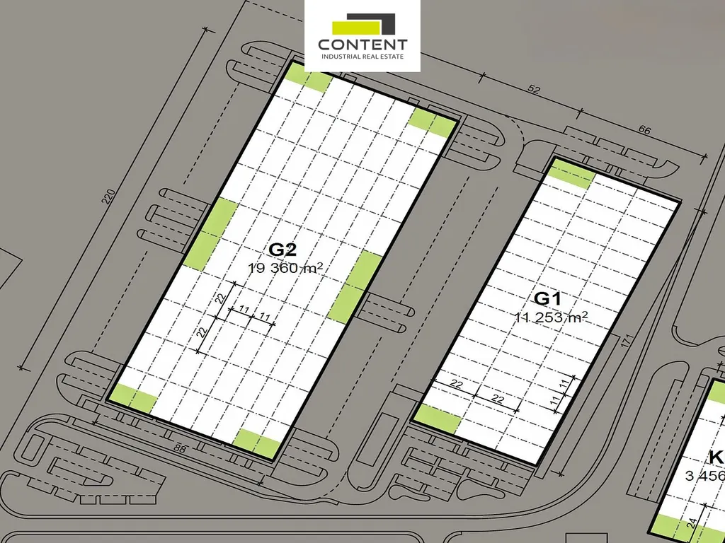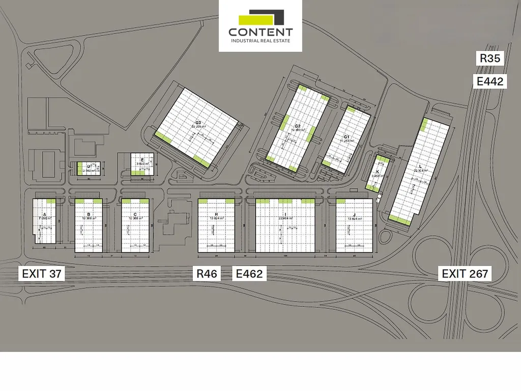 - existující budova (G2) 19360 m², k dispozici dohodou
