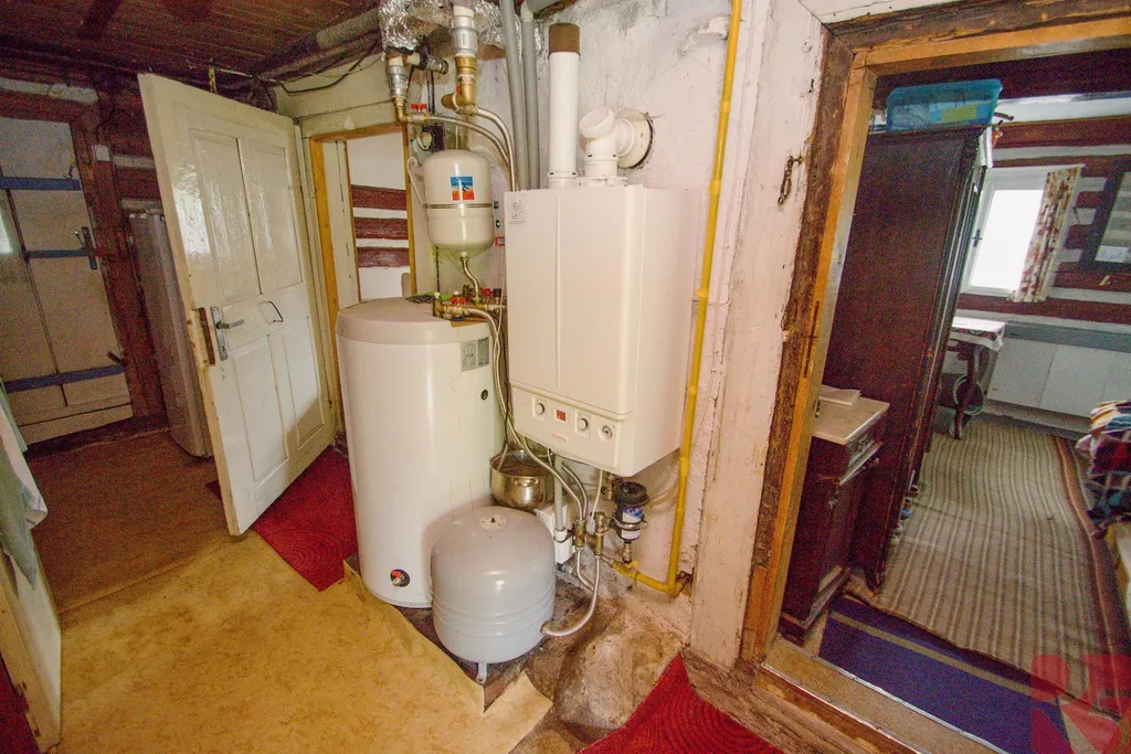 V přízemí velká společenská místnost 33m2 a dva pokoje, 11 a 13m2. V patře jsou pak tři obytné velké místnosti s dřevěnými stěnami. Dům je okamžitě obyvatelný. Napojený je na místní kanalizaci, vodovod a elektřinu. Vytápění moderním plynovým kondenzačním kotlem s dálkovým ovládáním.