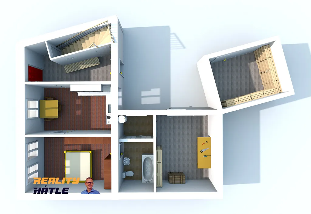 Pro lepší představu o možném dispozičním řešení přikládám 3D náhledy.