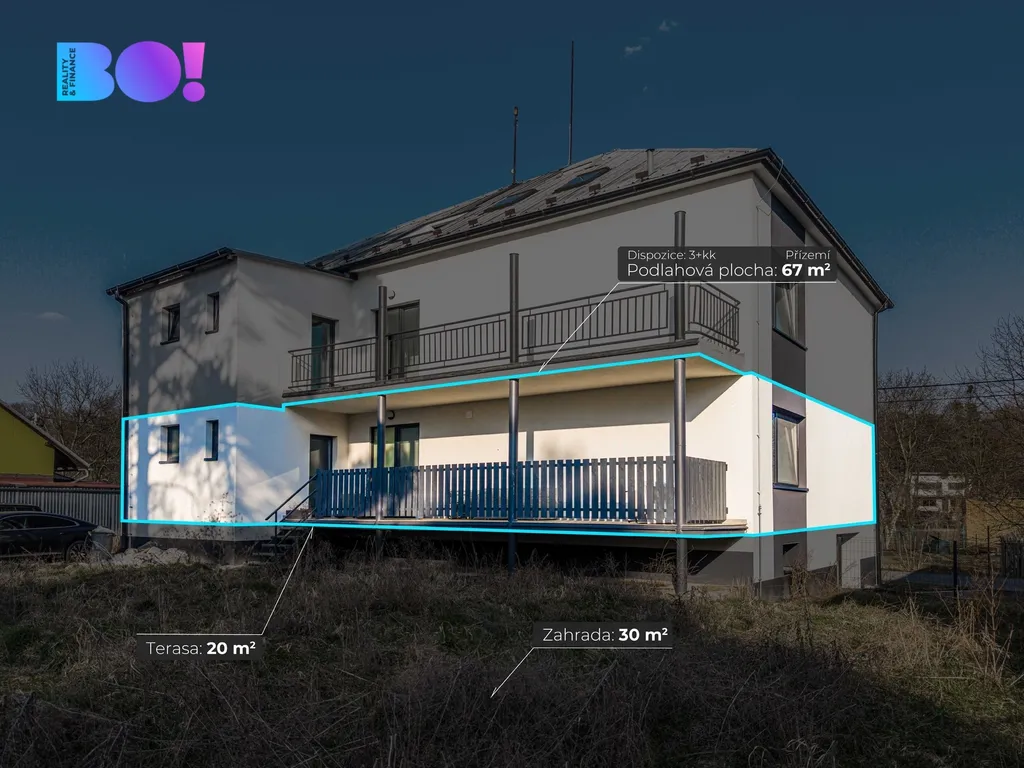 BO! Nabízíme k prodej moderní byt 3+kk s terasou 20 m² a přímým vstupem na zahradu a nadstandardním zázemím.