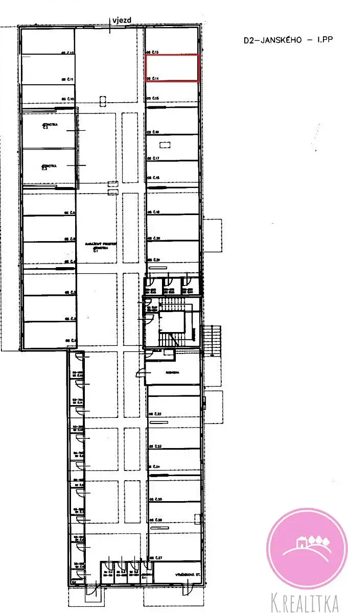 Nabízíme pronájem dvou garážových parkovacích stání o velikosti 13 m2. Stání se nachází v suterénu obytného domu na ulici Janského. K dispozici dálkový ovladač a klíč pro vstup z ulice. Volné od 21.5.2026. Cena za jedno: 2.400,-Kč/měsíc. Kauce ve výši jednoho měsíčního nájmu, platba za dálkový ovladač 300,-Kč.