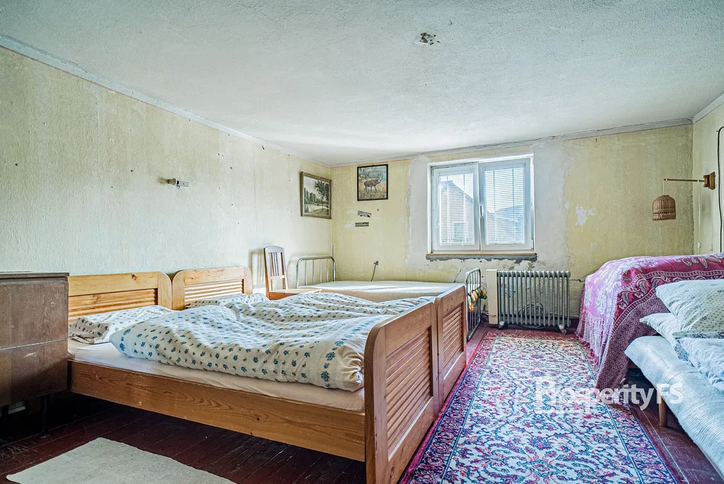 Nemovitost má dvě patra a je částečně podsklepená. V přízemí najdete prostorný obývací pokoj s útulným krbem, velkou kuchyni s jídelním koutem a komfortní koupelnu. V prvním patře je ložnice a rozlehlý půdní prostor, který nabízí široké možnosti pro budoucí vestavbu či rozšíření obytné plochy. Dále jsou k dispozici další místnosti, jež lze využít jako ložnice či pracovny podle vašich potřeb.