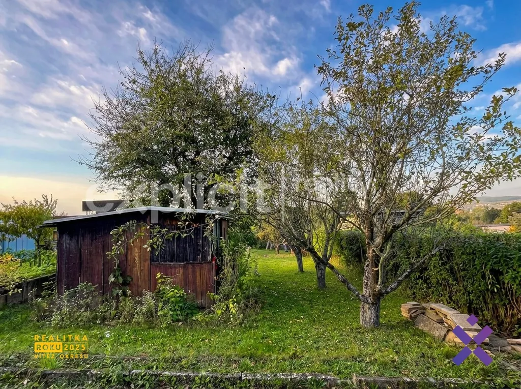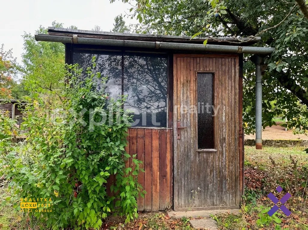 Na pozemku o výměře 261 m² se nachází menší dřevěná chatka, která poslouží pro zázemí při zahradničení. Na zahradě je vysazena třešeň a dvě jabloně, nechybí ani prostor pro pěstování vlastní zeleniny.