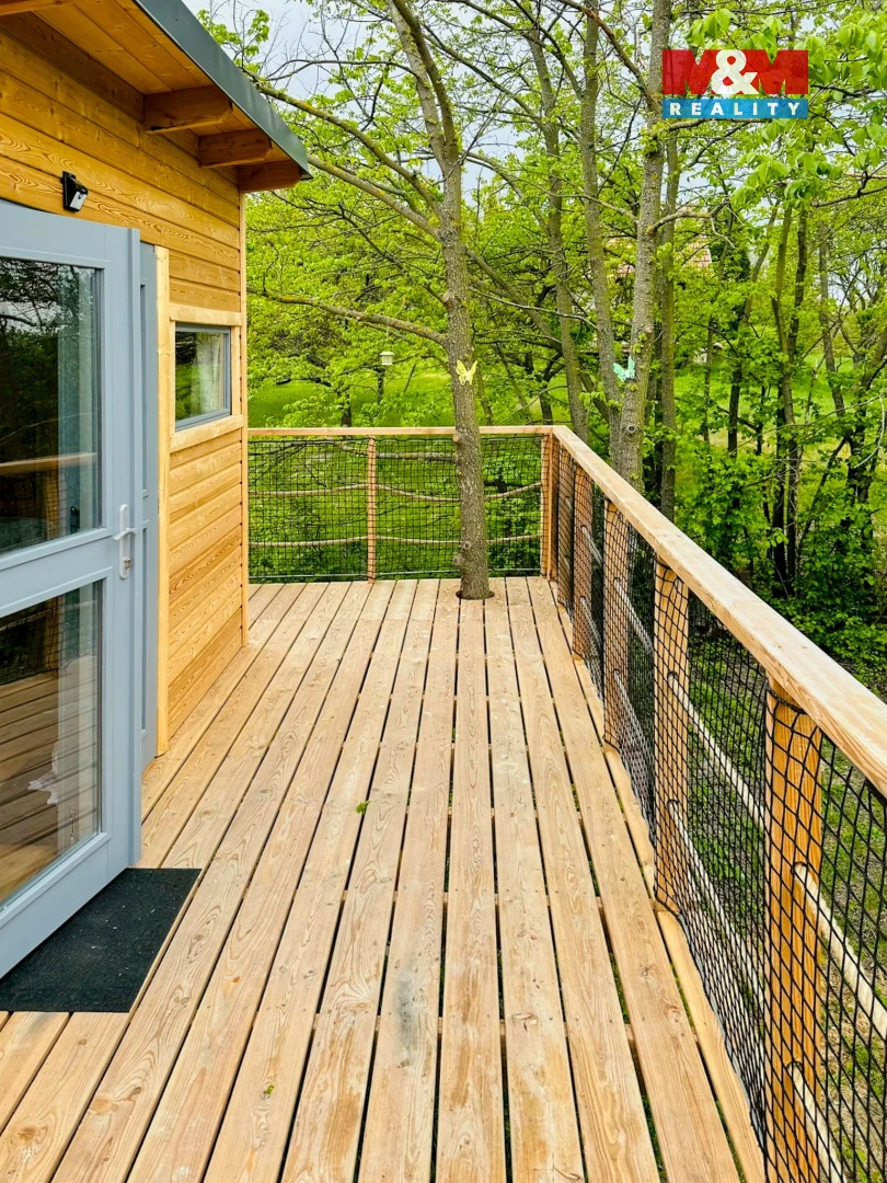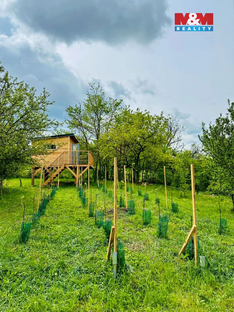 Nabízíme jedinečnou zahradu s vinohradem o rozloze 935 m² v obci Blučina, s originálně provedeným Tiny Housem ve formě stromového domu. Tento stylový objekt na pilotech a s vlastní terasou nabízí krásné výhledy na okolní krajinu a je ideálně propojen s okolní přírodou.