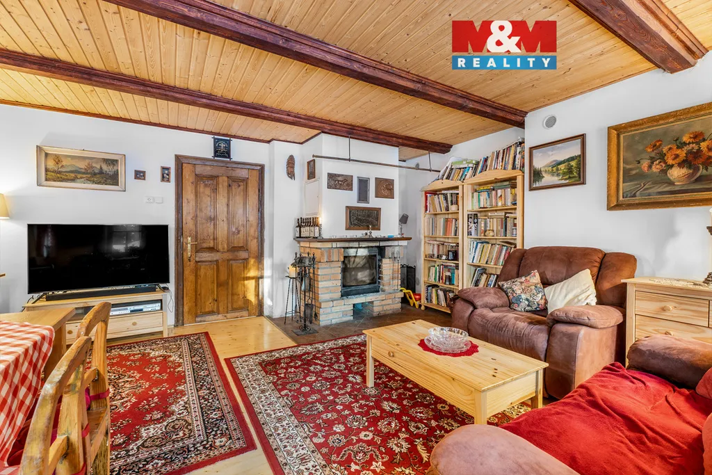 Dům prošel rekonstrukcí a je připraven k okamžitému užívání. V přízemí se nachází obývací pokoj s krbem, kuchyně, koupelna a samostatné WC. V patře jsou dvě světlé ložnice s výhledem do zeleně. Masivní nábytek je součástí prodeje a podtrhuje horský charakter nemovitosti, vyvložkovaný komín navíc zajišťuje bezpečný provoz krbu.