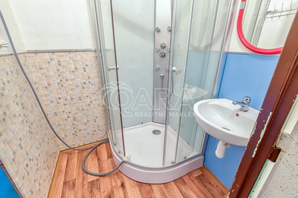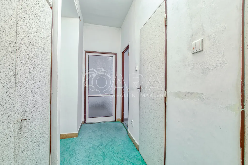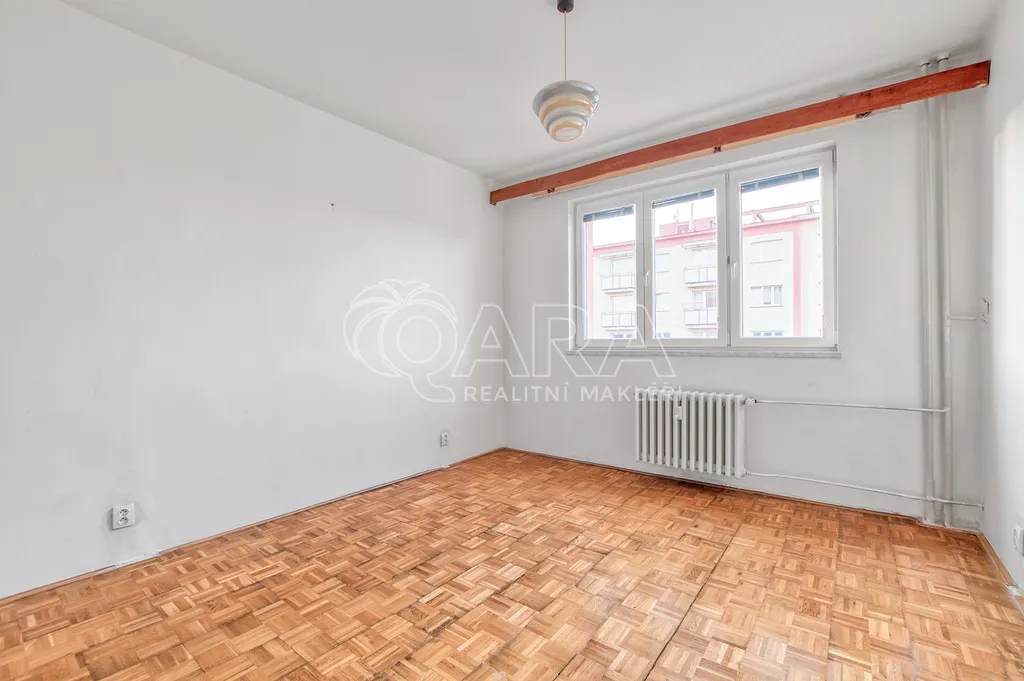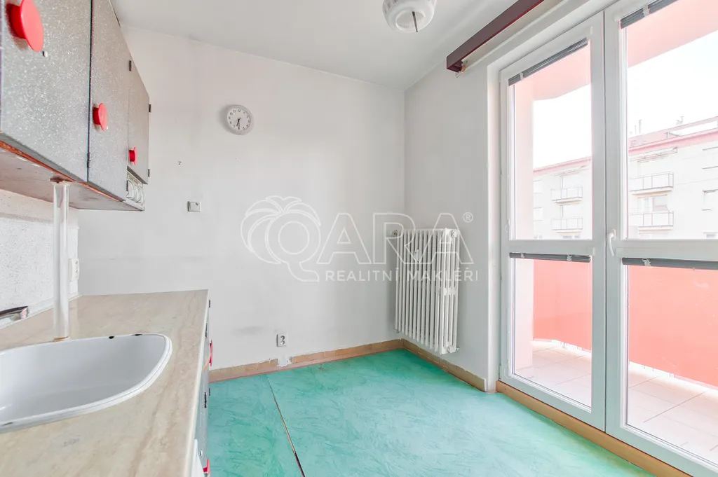 Tento byt v osobním vlastnictví se nachází v pátém nadpodlaží sedmipatrového panelového domu, který již prošel kompletní revitalizací. Jeho současný stav je ideální pro celkovou modernizaci. Na podlahách je položeno linoleum a koupelnové jádro je původní (umakartové), což vám dává volnou ruku při návrhu nové moderní koupelny. Ohřev vody je momentálně zajištěn plynovou karmou.