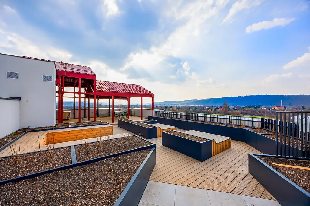 Exklusivně nabízíme k prodeji zcela nový byt 4KK o celkové podlahové ploše 113,6m2 včetně balkonu o výměře 7,7m2 ve 3n.p právě dokončeného bytového domu. Součástí nabídky jsou rovněž dvě krytá parkovací stání a dva sklepy. Byt se skládá z obývacího pokoje, samostatné koupelny, WC, komory a třech ložnic, přičemž jedna z ložnic má vlastní WC a prostorný sprchový kout, z prostorného obývacího pokoje je velmi pěkný výhled na řeku, z ložnic pak do klidného upraveného vnitrobloku. Velkou výhodou je možnost využití komunitní terasy na střeše domu, která skýtá krásný výhled do okolí, tak i technické zázemí v podobě WC a zastřešení části prostoru pro pořádání sousedských setkání, tato terasa má cca. 150m2. Bytová jednotka je provedena ve vysokém standartu provedení z pohledu technického(rekuperace, podlahové vytápění, předokenní elektrické žaluzie), tak i z hlediska použitých materiálů(velkoformátové dlažby, bezfalcové dveře, zařizovací předměty). V okolí je plná občanská vybavenost a díky tramvajovému dopravě i rychlý dojezd do centra města.