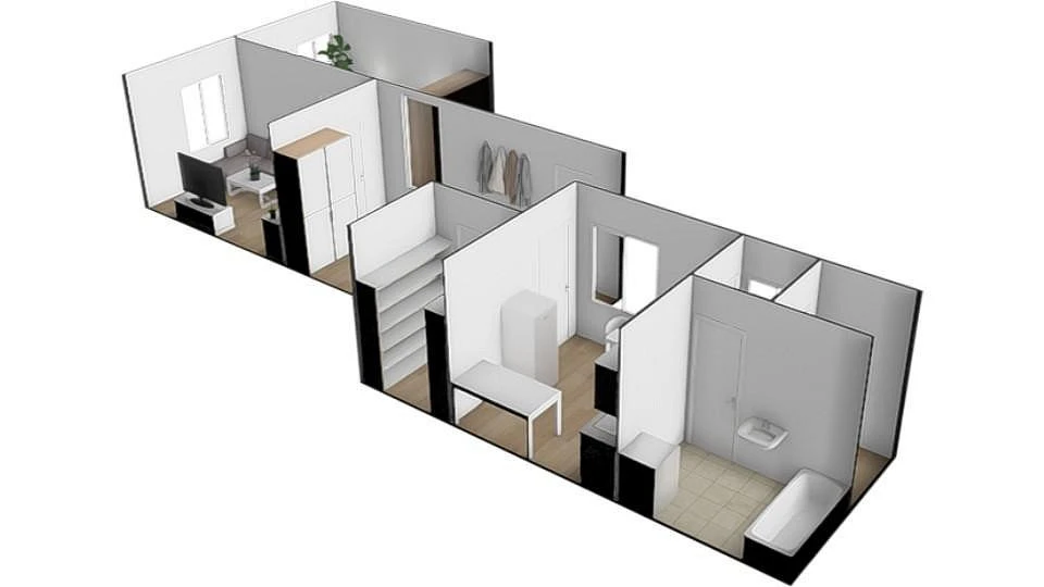 Druhý pokoj o velikosti cca 25 m and sup2; je vybaven pokojovou stěnou.
