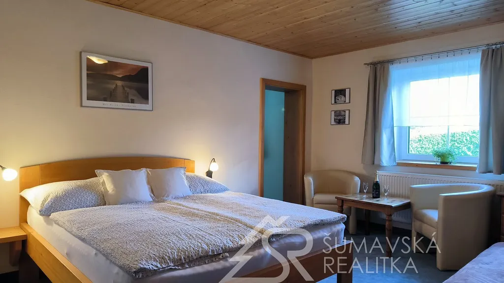 Nabízíme zavedený, na dvě budoucí sezóny plně vyprodaný penzion na Šumavě s pozemkem o celkové výměře 6.269 m², bez jakékoliv potřebné investice či nutnosti změny. Zrekonstruován byl v roce 2014 a postupně dál modernizován. Každý pokoj má svoje sociální zařízení i kuchyňskou linku vybavenou myčkou na nádobí. Kromě budovy a pozemků získáte i know-how majitelky.