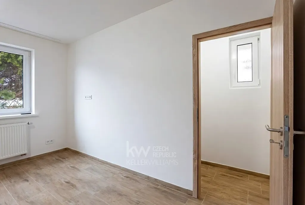 * Místnost mezi obývacím pokojem a ložnicí slouží jako prádelna. Vejde se sem pračka a sušička.