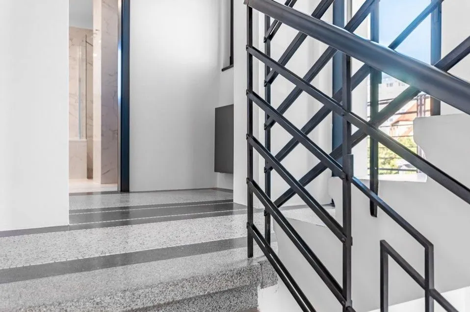 K zachovaným původním prvkům patří například schodišťová chodba s okny, původní repasovaná teraco v chodbách a na schodišti.