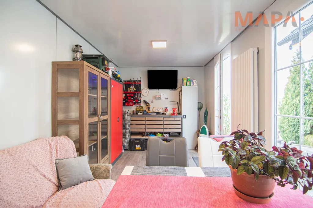 Pozemek je osázen okrasnou zahradou s pečlivě navrženou zelení, která vytváří příjemné a estetické prostředí po celý rok. Zahrada je plně funkční a udržovaná, připravená k okamžitému užívání.